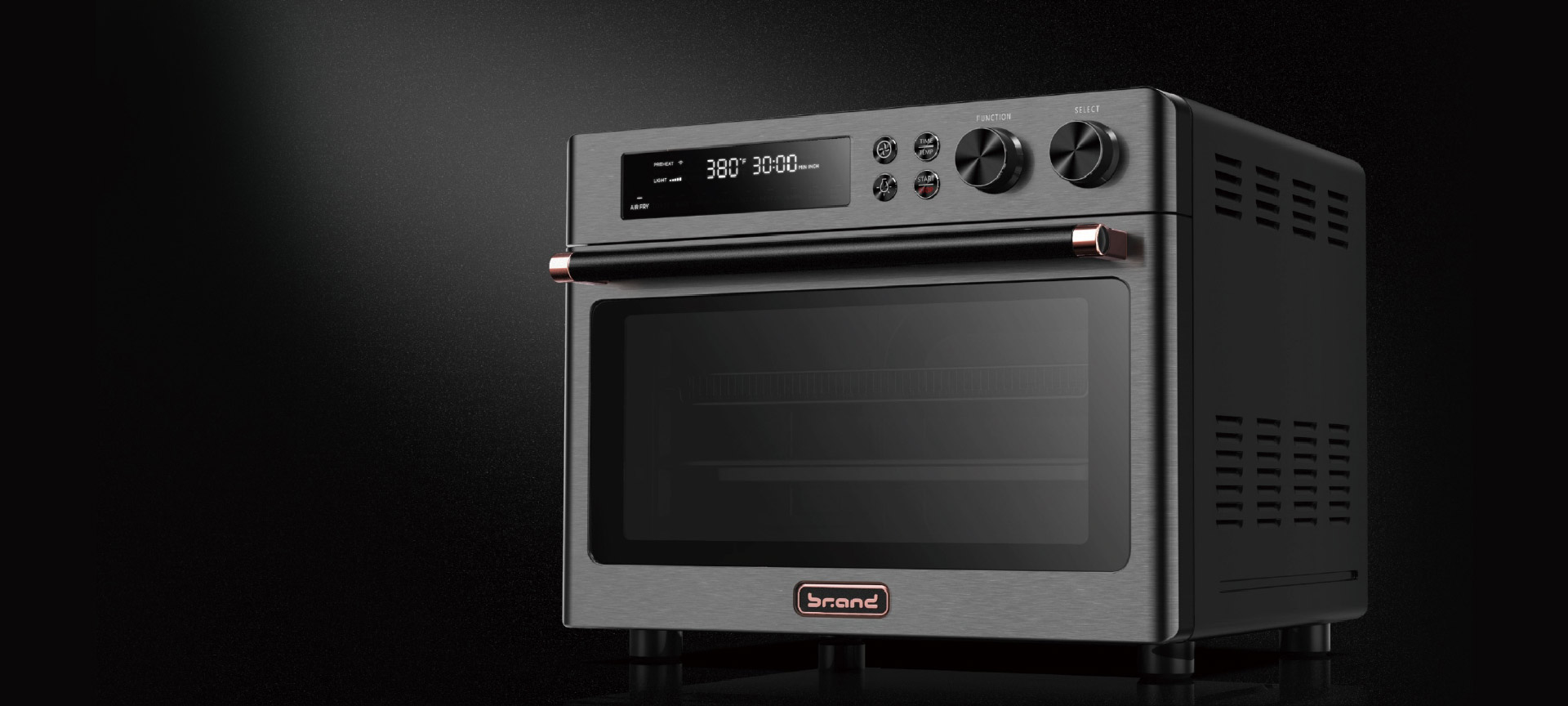 生活水平不断提高,促使人们愈益追求高品质的居食环境.产品的形态需要贴合用户目标的生活消费习惯.为了提高使用体验,我们通过同类产品使用过程中的发现使用采用玻璃面板数显﹐配以防指纹的CD纹按键和旋钮设计.可使用户保持适当距离即可观察烹制的过程同时也解决了产品外壁整洁的问题.